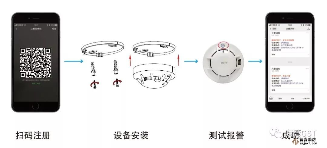 報警器采用科學先進的休眠技術(shù),結(jié)合NB-IoT的低功耗優(yōu)勢,電池容量可滿足5年使用要求①。電池電量實時監(jiān)測,電池低電量手機自動提醒,使用無憂。