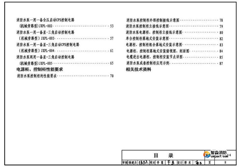 圖集提供消防水泵電動機(jī)一用一備全壓啟動、一用一備星-三角降壓啟動、兩用一備星-三角降壓啟動三種常用啟動類型的機(jī)械應(yīng)急啟動控制,水泵電動機(jī)采用AC380V三相異步籠型電動機(jī),最大容量為110kW。其他類型消防水泵機(jī)械應(yīng)急啟動控制電路可根據(jù)國家建筑標(biāo)準(zhǔn)圖集D303-3《常用水泵控制電路圖》,并參考本圖集做相應(yīng)修改。