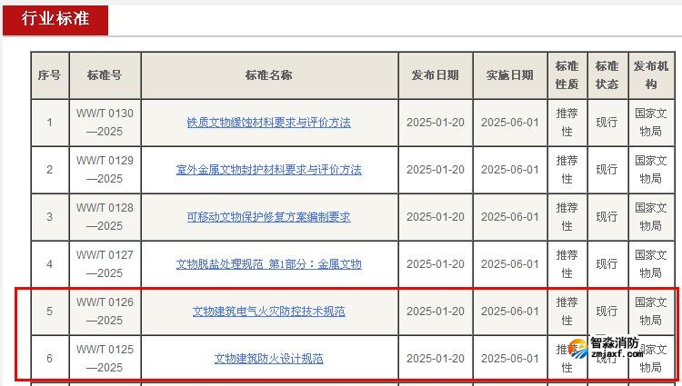 現(xiàn)將《文物建筑防火設(shè)計規(guī)范》等6項文物保護行業(yè)標準(清單見附件)發(fā)布,自2025年6月1日起施行。相關(guān)標準文本可在我局政府門戶網(wǎng)站政務(wù)公開中的“行業(yè)標準”專欄中查詢和下載。