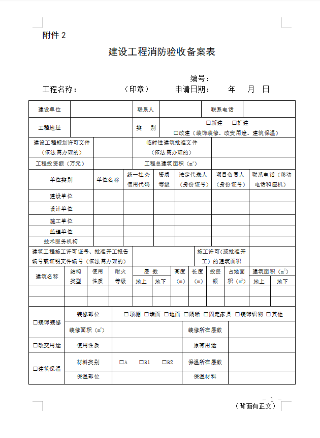 ?。ㄒ唬┙ㄔO工程消防驗收備案表;