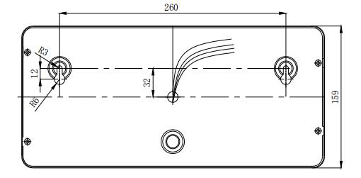 噴灑燈安裝方式采用壁掛方式。先安裝兩只M6×60膨脹螺栓,安裝孔距為260mm(見圖5-15),再將噴灑燈接好線,調節(jié)好膨脹螺栓的高度,將噴灑燈緊掛在墻上。也可將外殼上蓋打開,把膨脹螺栓的螺母擰緊。