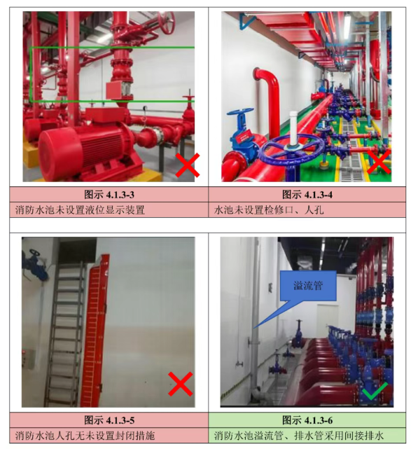 2 消防水池、高位消防水池和高位消防水箱的有效容積、水位、報(bào)警水位等,應(yīng)符合設(shè)計(jì)要求;【圖示4.1.3-3】