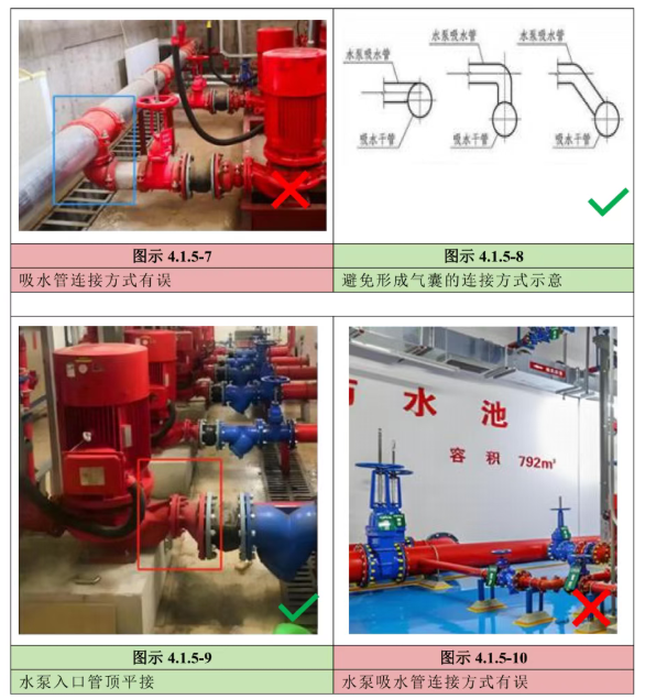 5 消防水泵的吸水管上應設置明桿閘閥或帶自鎖裝置的蝶閥,但當設置暗桿閥門時應設有開啟刻度和標志;當管徑超過DN300時,宜設置電動閥門;【圖示4.1.5-11】(X)【圖示4.1.5-12】(√)
